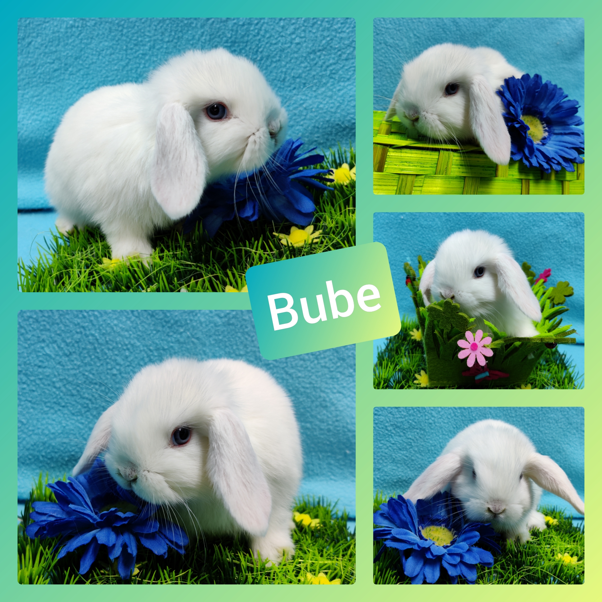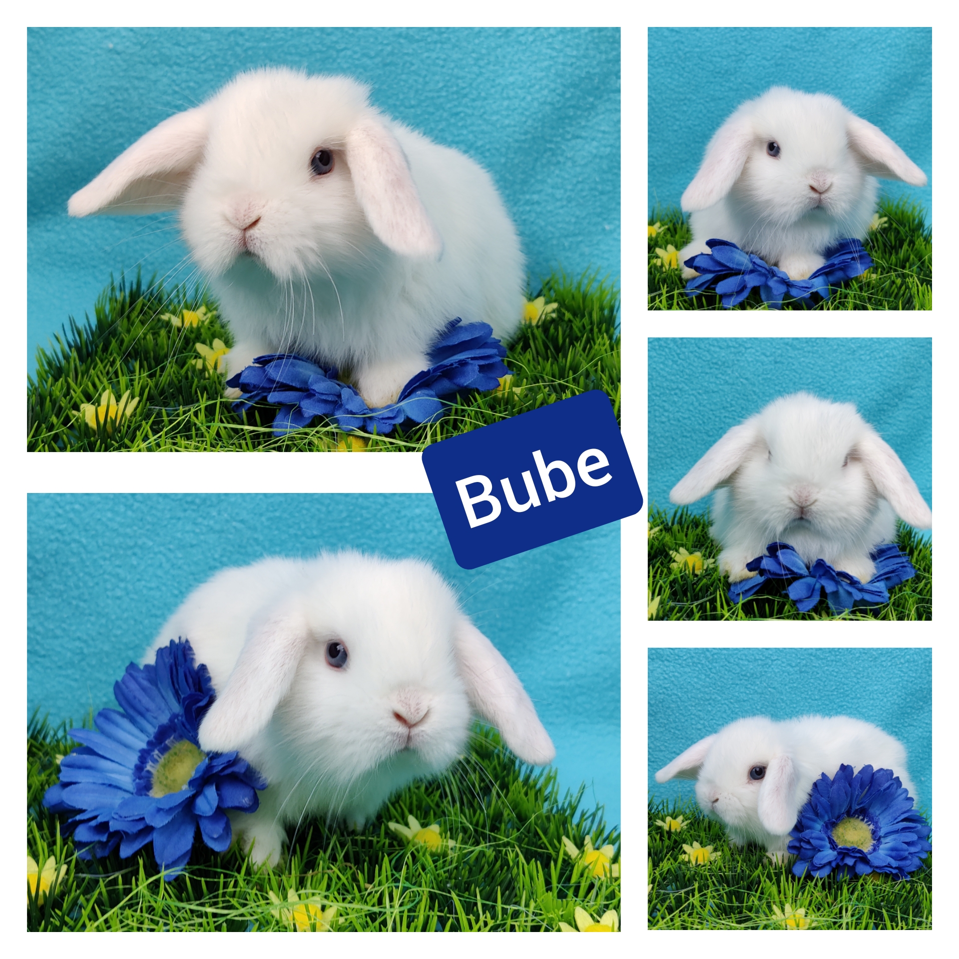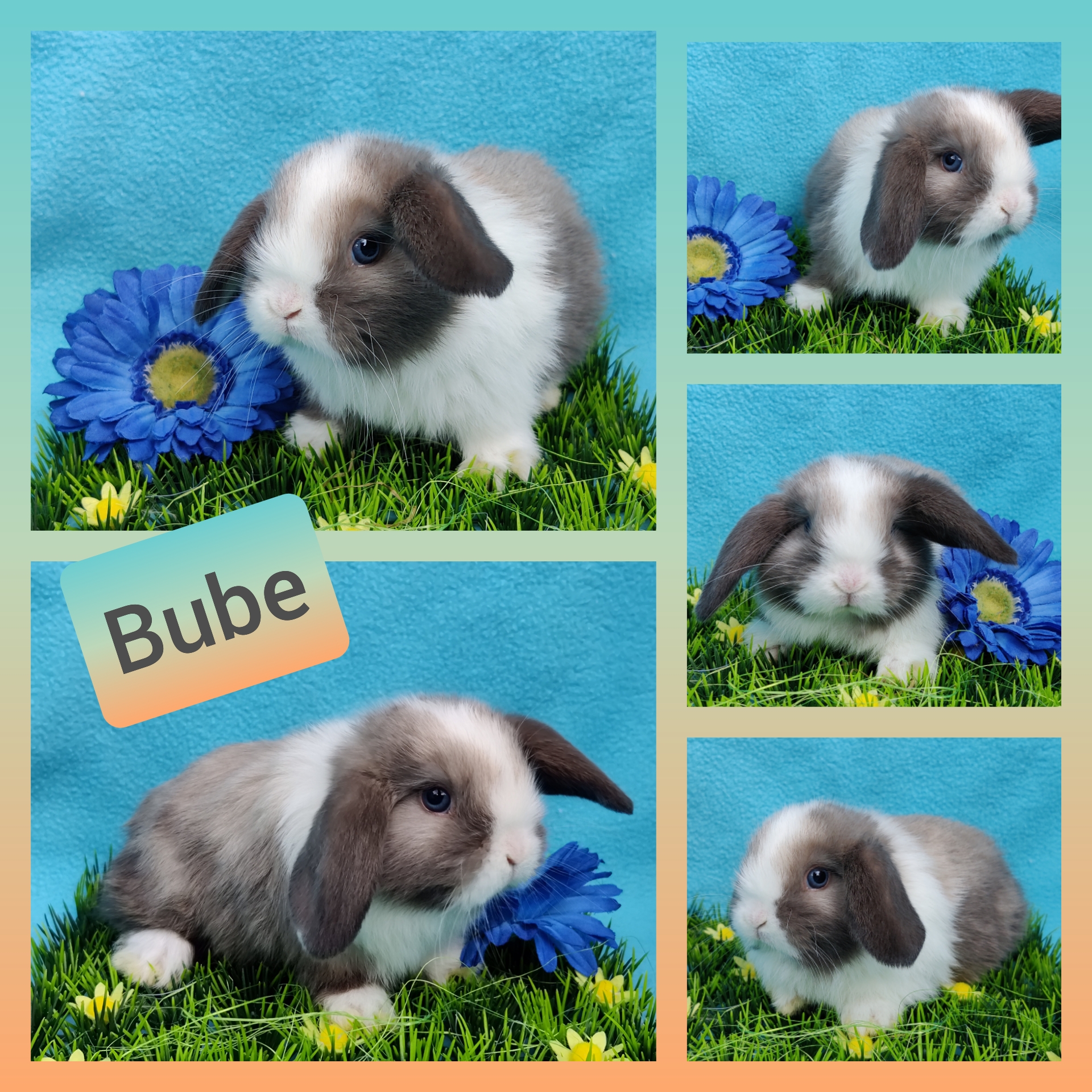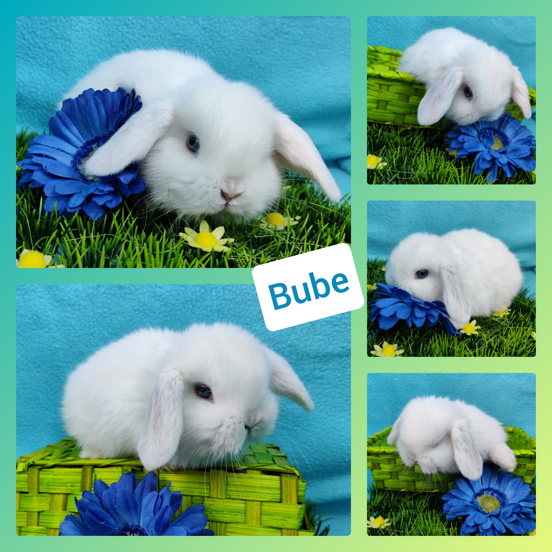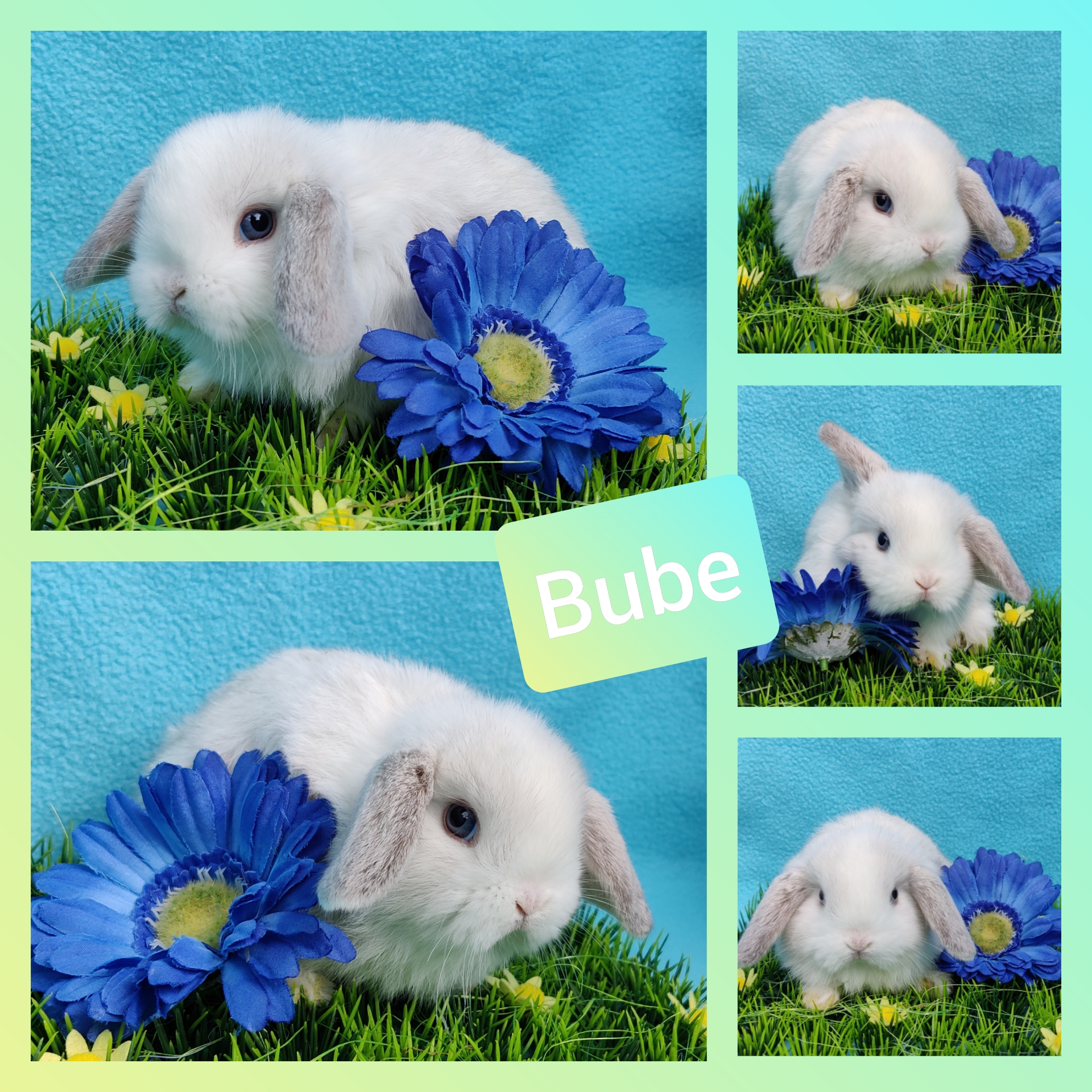Gelb-Weiß Holländerschecke, blaue Augen