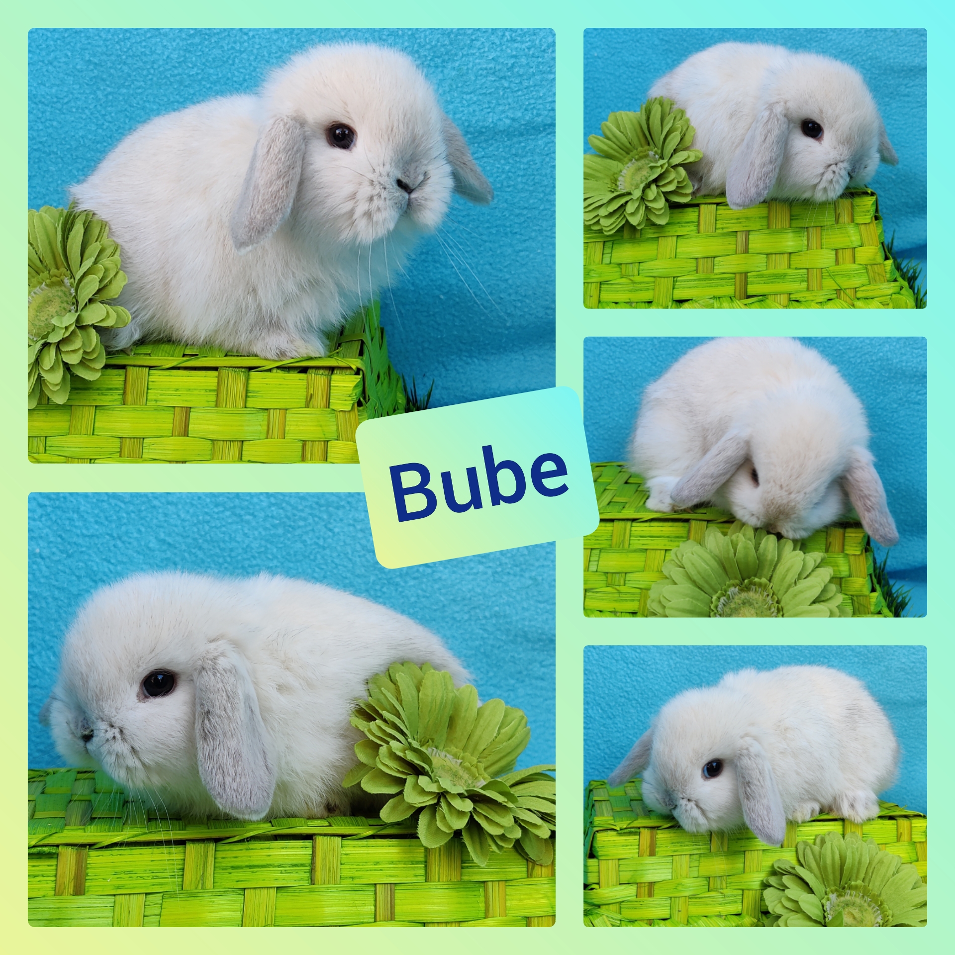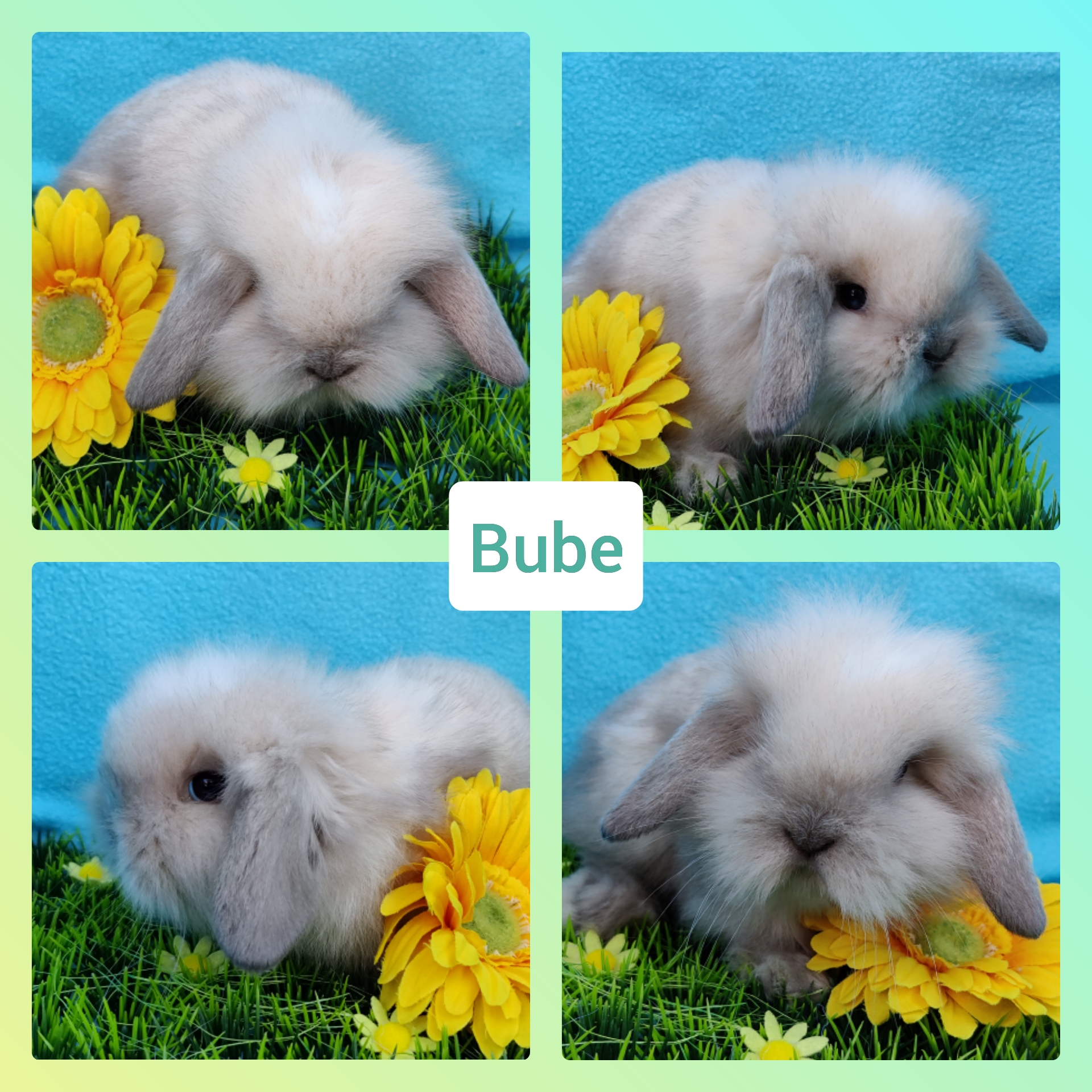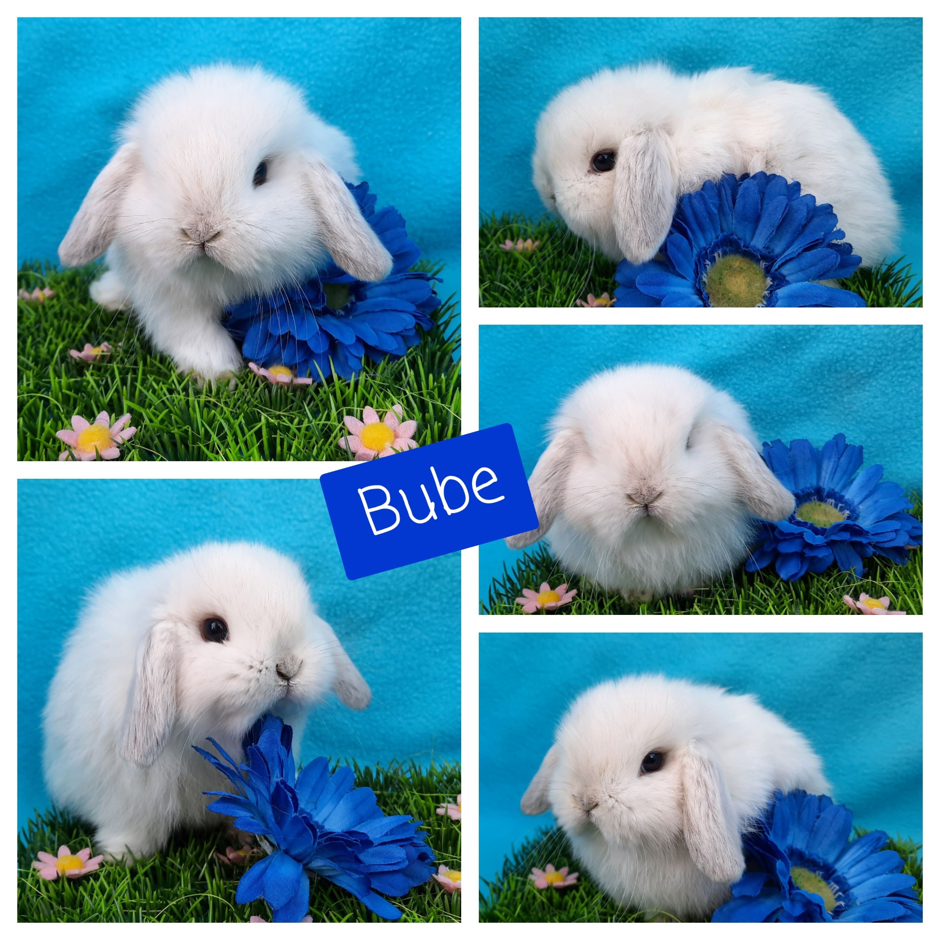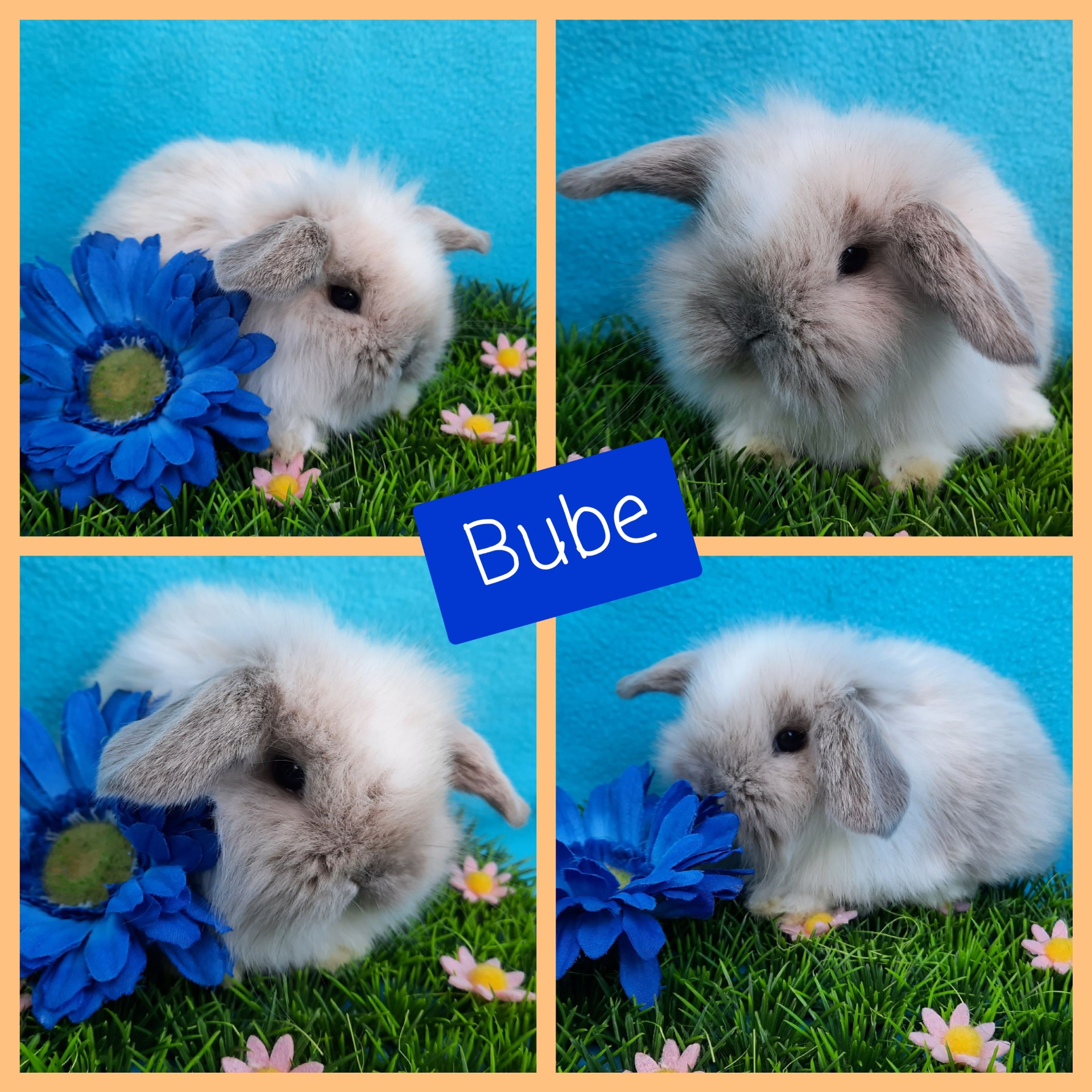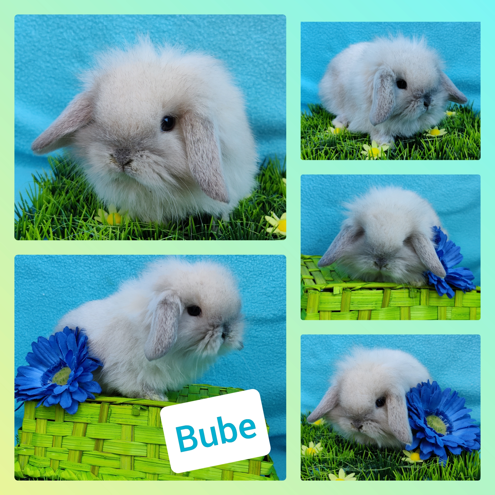 Gelb-Weiß Holländerschecke, blaue Augen