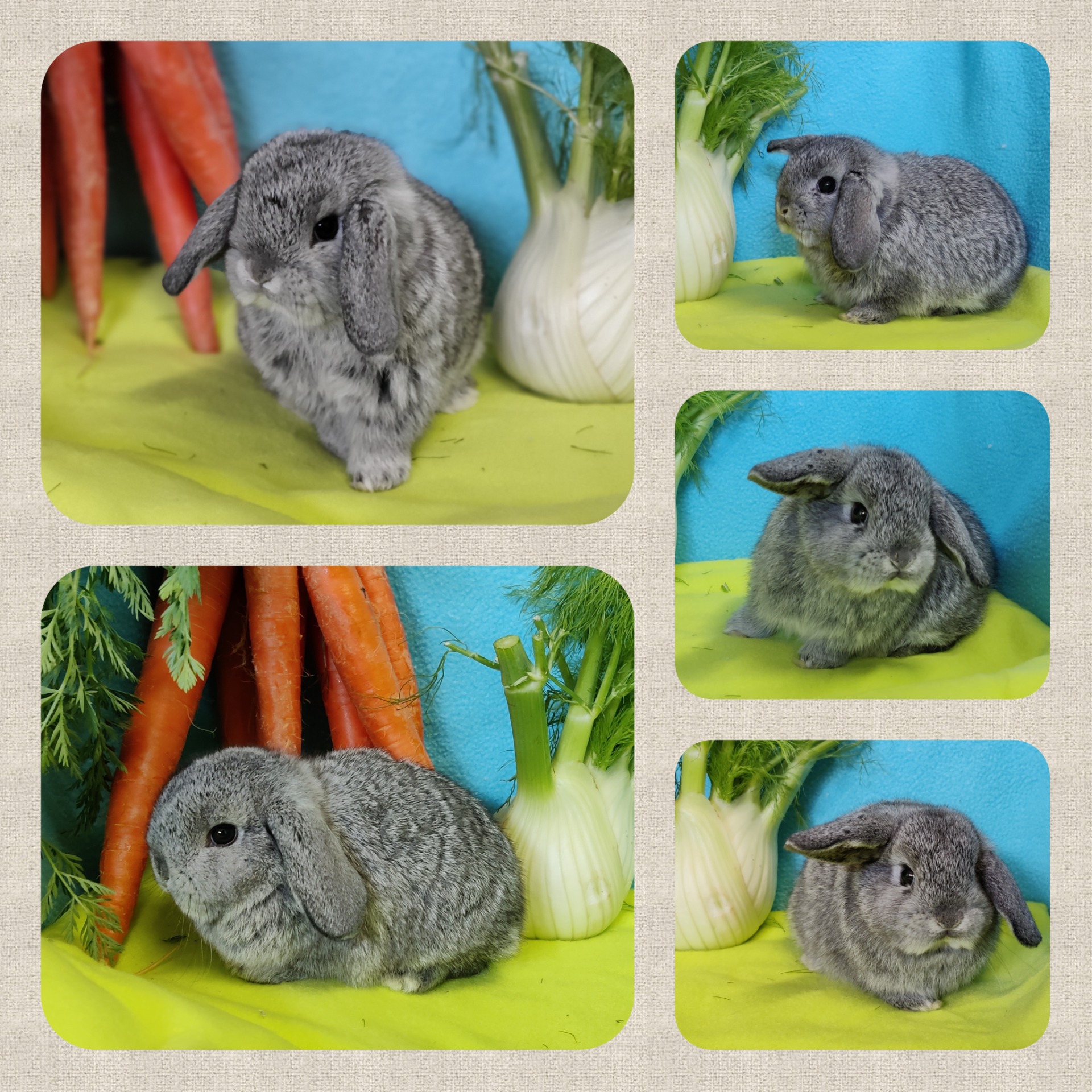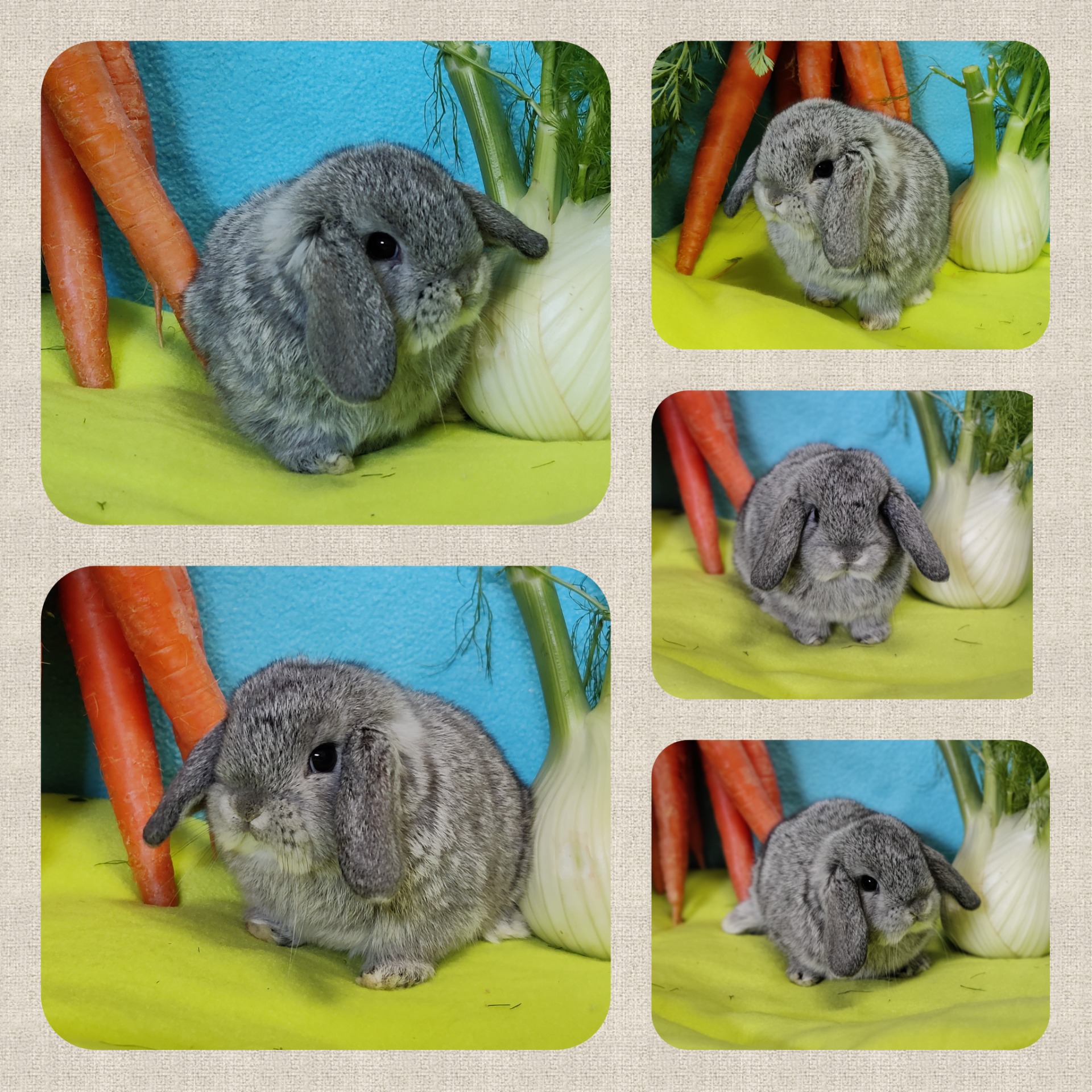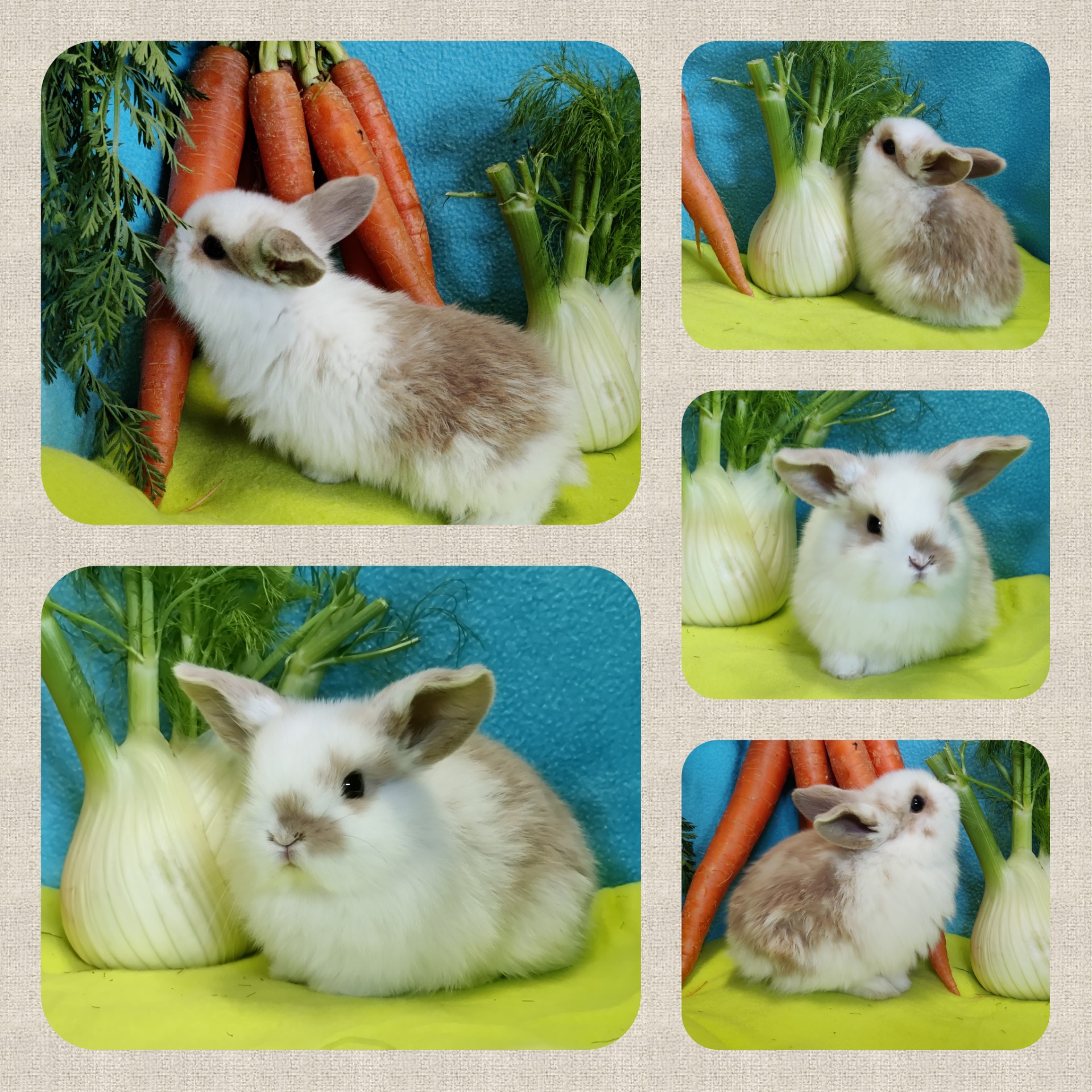 Eltern: Lilia (NHD/Mini Lop) und Olaf (NHD-Mini Lion Lop)